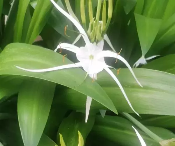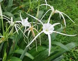 水鬼蕉叶姿健美,花期6-7月,花白色,花朵一般比较大,花瓣厚而覆盖着蜡质,一般为黄绿色到黄色,并分布着一些褐色或紫褐色的斑点。花瓣一般是细长的,且分的很开,酷似蜘蛛的长腿,而花朵中间的部分则可被看作是蜘蛛的身体。在顶端多会有向下的弯曲。适合盆栽观赏。温暖地区,可用于庭院布置或花境、花坛用材。