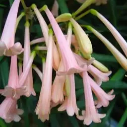 多年生鳞茎草本植物,叶10-12枚,剑形,长45- 水鬼蕉 75厘米,宽2.5-6厘米,顶端急尖,基部渐狭,深绿色,多脉,无柄。花茎扁平,高30-80厘米;佛焰苞状总苞片长5-8厘米,基部极阔;花茎顶端生花3-8朵,白色,无柄;花被管纤细,长短不等,长者可达20厘米以上,花被裂片线形,通常短于花被管;杯状体(雄蕊杯)钟形或阔漏斗形,长约2.5厘米,有齿,花花丝分离部分长3-5厘米;花柱约与雄蕊等长或更长。花绿白色,有香气。花期夏末秋初。蒴果卵圆形或环形,肉质状,成熟时裂开。种子为海绵质状,绿色。 [1-2]