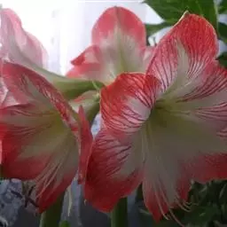 朱顶红 H. E. Moore),石蒜科属多年生草本植物,鳞茎近球形,并有匍匐枝;叶鲜绿色,…