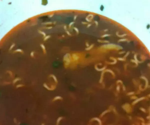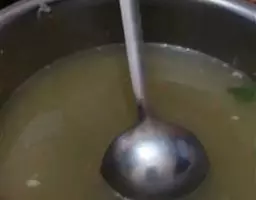 汤的做法并不复杂,净锅上火,掺入棒骨汤烧沸,下入绿豆面丸子(或白面丸子)及薄饼,稍煮后调入精盐、味精,起锅盛入碗中,再放上蒜茸,淋入辣椒油、香油,最后撒上香菜末即成。