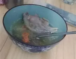 5、食用时,分10克,每份放豌豆5克、牛肉丸子12个和汤,即可。