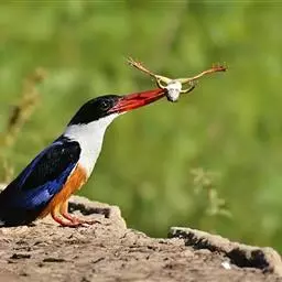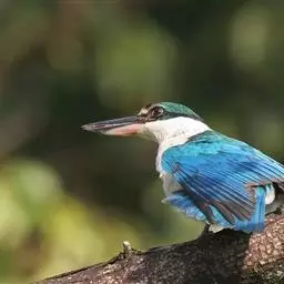 白领翡翠:有50个亚种。体长18厘米,体重35-40克。是一种蓝白色翡翠鸟。…