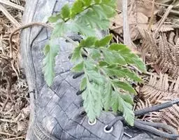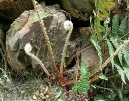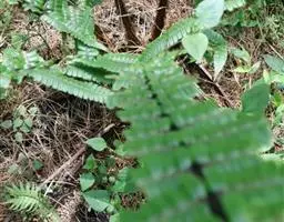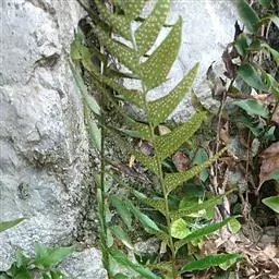 多年生攀援草质藤木,植株长5-6m。叶二型,厚纸质,羽片多数,对生,于叶轴的短枝上相距约25cm,短枝顶端着生一丛红棕色短柔毛;营养羽片生于叶轴下部,叶柄长4-4.5cm,柄先端具狭边,羽片掌状深裂,裂片6,披针形,长17-22cm,宽1.8-2.5cm,基部截形或阔楔形,全缘,有软骨质狭边,干后常向下面反卷。孢子羽片生于叶轴的上部,二叉掌状深裂至近基部,裂片与营养裂片同形,长20-30cm,宽2-2.5cm;叶脉分离,二叉状分枝直达叶缘。孢子囊穗褐色或绿褐色,线形,长2-5mm,紧密排列,有孢子囊5-6对;孢子淡黄色,四面型。