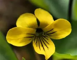 花黄色,有紫色条纹,宽约1厘米;花梗较叶长,细弱,长1.5-3.5厘米,在上部有2枚小苞片;萼片狭条形,长约5毫米,先端钝,基部附属物极短,边缘膜质;上方及侧方花瓣倒卵形或长圆状倒卵形,长7-9毫米,宽3-4毫米,侧方花瓣里面无须毛,下方花瓣稍短;距浅囊状,长1-1.5毫米;下方雄蕊之距短而宽呈钝三角形;子房近球形,无毛,花柱基部稍膝曲,上部2裂,裂片肥厚,微平展。闭锁花生于茎上部叶腋,花梗较叶短,结实。