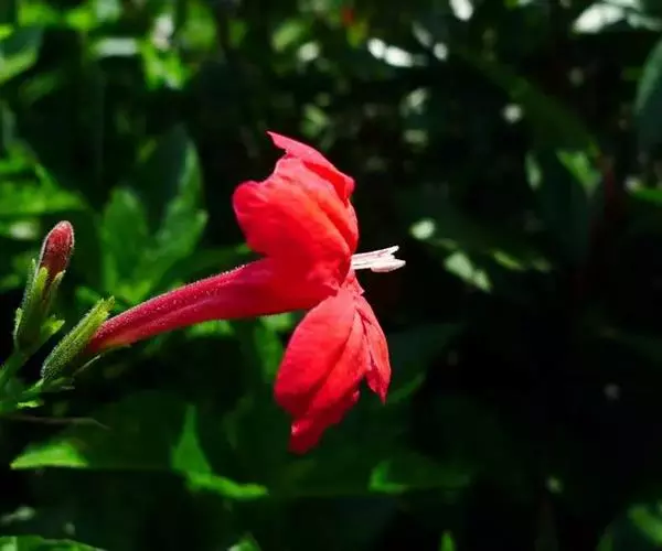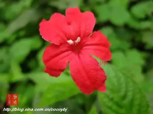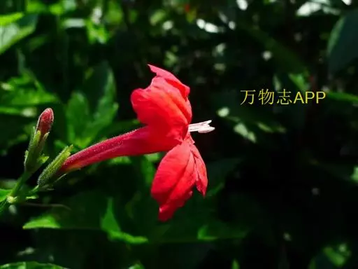 株高60-90厘米。叶椭圆状披针形或长卵圆形,叶绿色,微卷,对生,先端渐尖,基部楔形。花腋生,花冠筒状,5裂,鲜红色,花期夏、秋季。花姿幽美,适合庭园成簇美化或盆栽。 我国华南作园林观赏栽培。花期夏秋季。