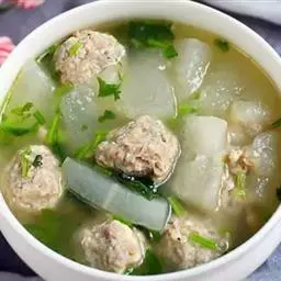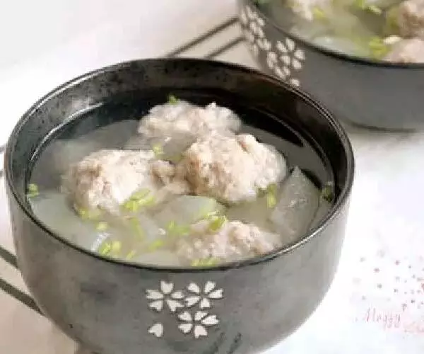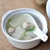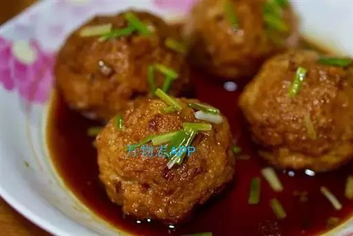 3.锅内留油,下入姜片、加入鸡汤、放入大肉丸子,放盐、味精、白糖、老抽王,用小火烧至汁浓,再用湿生粉勾芡收汁装碟即成。