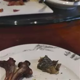 原汤原味,“狮子头”,即扬州话说的“大 斩肉”,北方话叫“大肉丸子”或“四喜丸子”。据说它的“远祖”是南北朝《食经》上所记载的“跳丸炙”(《齐民要术.炙法第八十》)。