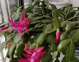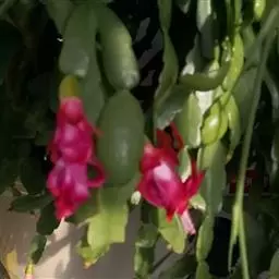 仙人指。花瓣为多层,规则而又整齐。雌蕊红色,雄蕊白色,均较长,伸出花筒外,与蟹爪兰相类似。花色为玫瑰红色。