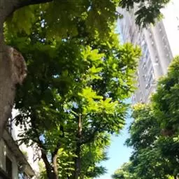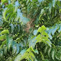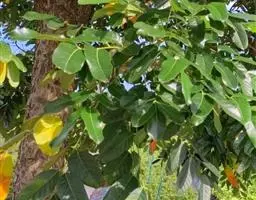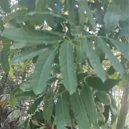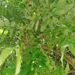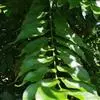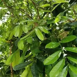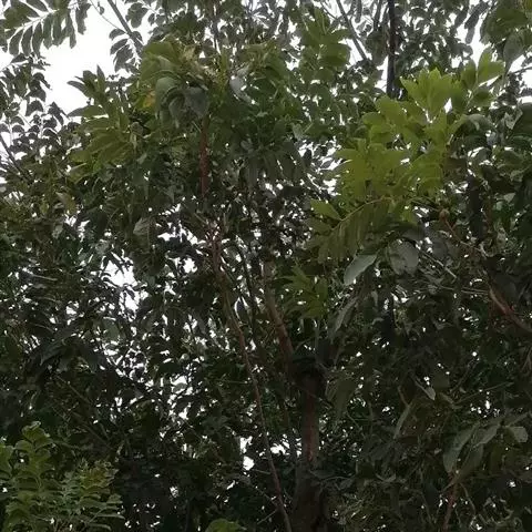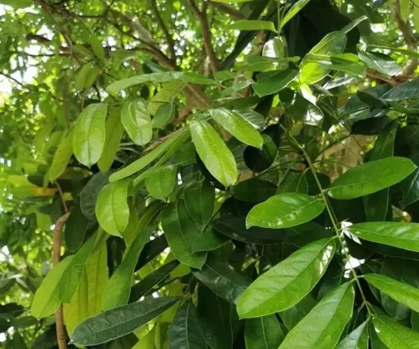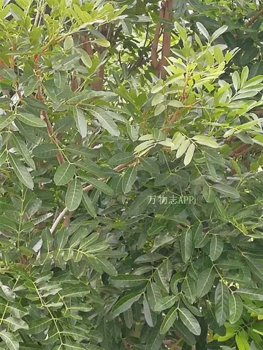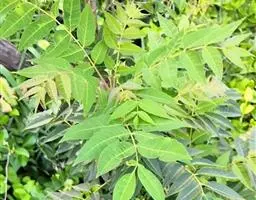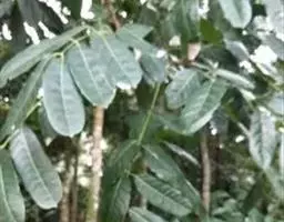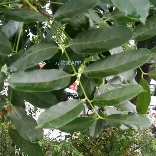 叶互生,叶轴和叶柄圆柱形,无毛,长15-60厘米或更长;小叶6-16,近对生或互生,顶端2对小叶对生,长圆形或长圆状椭圆形,下部小叶卵形,长7-17厘米,宽3-6厘米,先端短渐尖或急尖,基部宽楔形或略圆形,稍不对称,叶面深绿色,背面苍绿色,侧脉9-14对,干后两面稍突起,全缘;小叶柄长5-10毫米。
