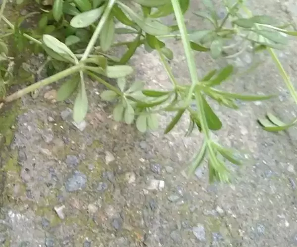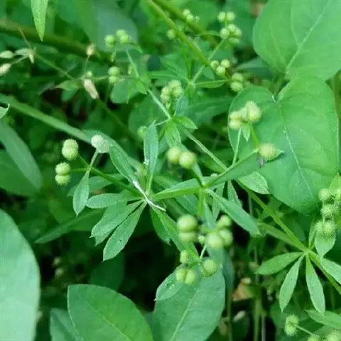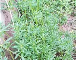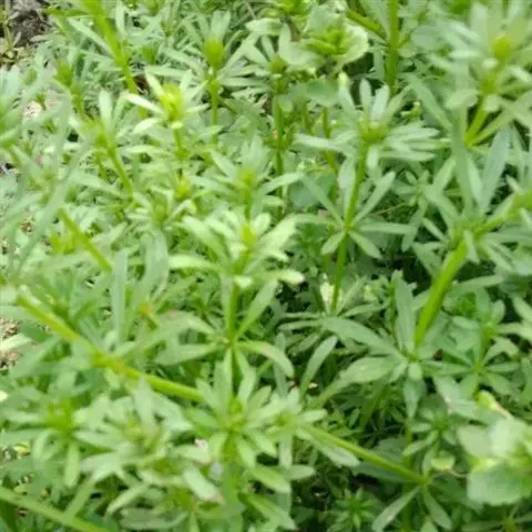 六叶葎 Ehrend. & Schönb.-Tem. ex R. R. Mill)是茜草科拉拉藤属的一年生草本。常直立,有时披散状,高10-60厘米左右,近基部分枝,有红色丝状的根;茎直立,具疏短毛或无毛;叶片薄,纸质或膜质,长圆状倒卵形、倒披针形、卵形或椭圆形顶端钝圆而具凸尖;聚伞花序顶生和生于上部叶腋,苞片常成对披针形,花冠白色或黄绿色,裂片卵形,雄蕊伸出;果近球形,单生或双生,密被钩毛;花期4-8月;果期5-9月。六叶葎分布于中国北、山西、陕西、甘肃、江苏、安徽、浙江、江西、河南、湖北等地,印度、巴基斯坦、尼泊尔、锡金、不丹、缅甸、日本、朝鲜、俄罗斯均有栽培。生于海拔920-3800米的山坡、沟边、河滩、草地的草丛或灌丛中及林下。六叶葎味甘,性平,具有清热解毒、利尿消肿的功效,可用于治疗尿路感染、赤白带下、痢疾、痛肿、跌打