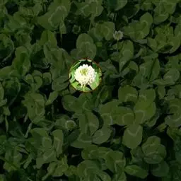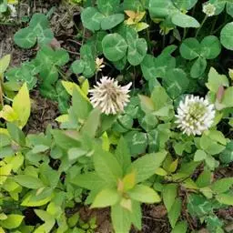 白车轴草,豆科车轴草属的多年生草本植物,茎贴地匍匐;叶柄直立,小叶心形,边缘具细齿,叶脉明显,…