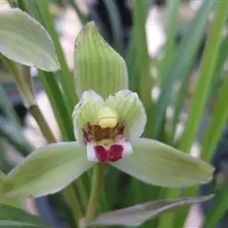寒兰是兰科兰属的地生草本植物。茎为椭圆形;叶呈带状,尾部修长渐尖,叶脉较明显;每秆花枝开5-12朵,…