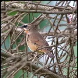 红点颏:是鸟纲、鹟科的鸣禽。又名西伯利亚歌鸲。体长14-17厘米,体重16-27克。…