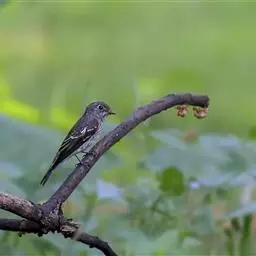 乌鹟:体重9-15克,体长12-14厘米。是一种体型略小的烟灰色鹟。上体深灰,翼上具不明显皮黄色斑纹,…