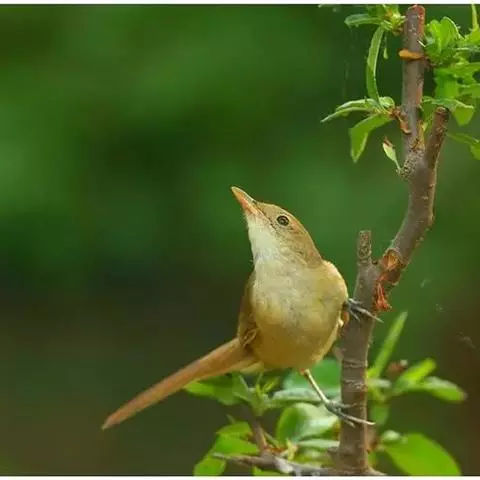 大苇莺:属小型鸟类,雌雄两性羽色相似。眉纹淡棕黄色;眼褐色;翅褐色具淡棕色的边缘;尾羽亦褐色,…
