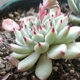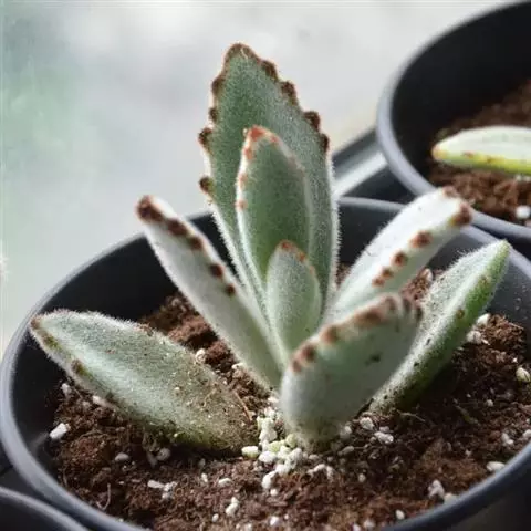 此外还可用老株旁边萌发的幼株进行扦插。扦插前需将切口晾干,再将下端茎干浅埋入沙土中。其余注意事项同叶插。扦插介质需使用疏松的沙质土壤,以便植株的根系能够良好地生长。