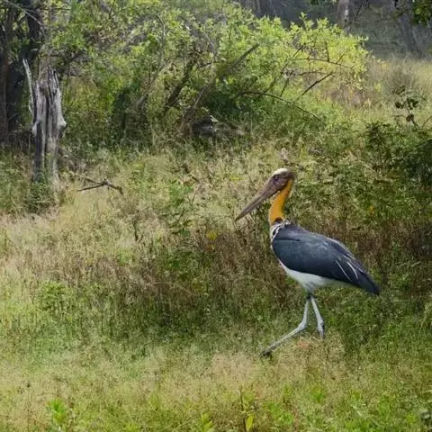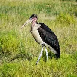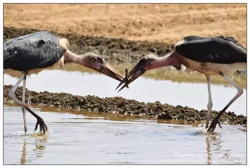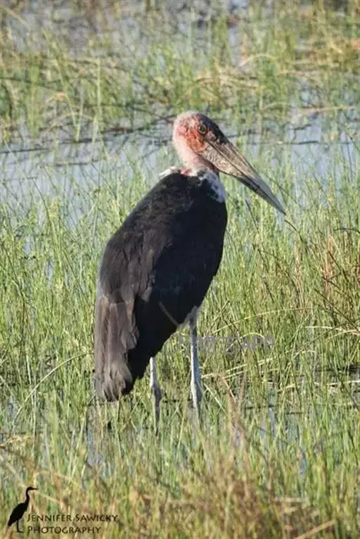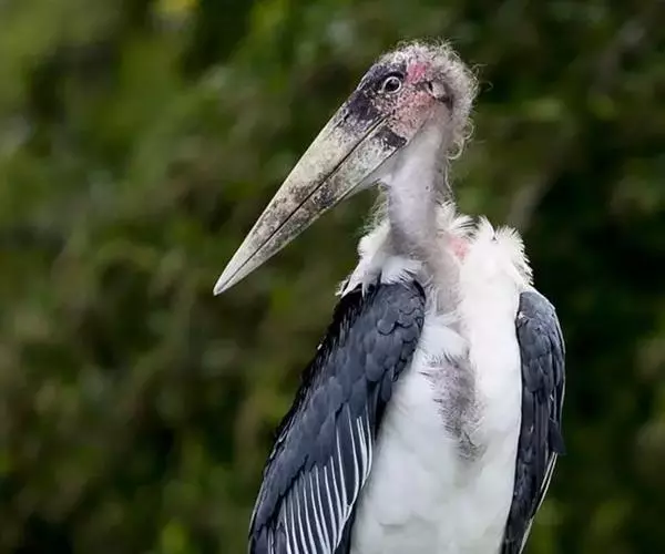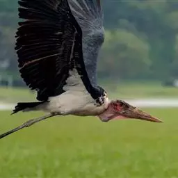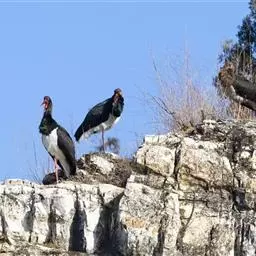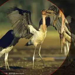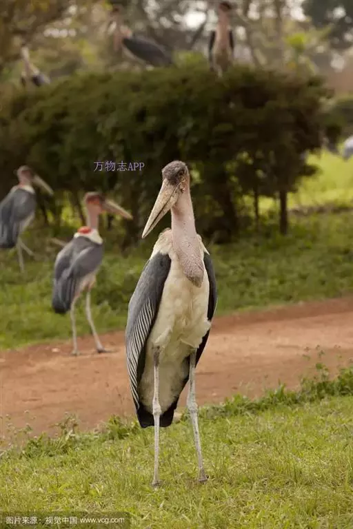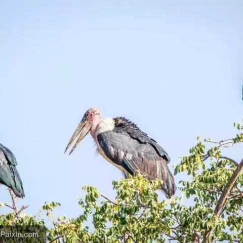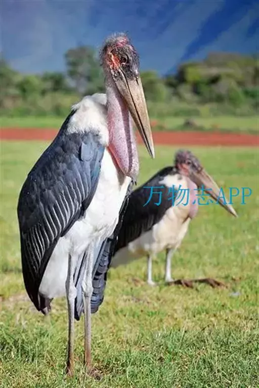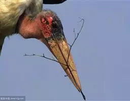 非洲秃鹳 非洲秃鹳栖居在河流、湖泊、沼泽、草地等地带,甚至靠近人类居住区,集群,日行性,飞翔沉重、缓慢。留鸟。颈下部的膨胀肉垂(喉囊)用于求偶炫耀。
