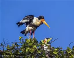 钳嘴鹳:鹳科动物。双翅展开时宽达81厘米。体型很大,体长81厘米。体羽白色至灰色,冬羽烟灰色。…
