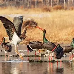 黑鹳是鹳形目鹳科鹳属鸟类,俗称乌鹳、钢鹳、老鹤。黑鹳头、颈和脊均呈黑褐色,故名黑鹳。…
