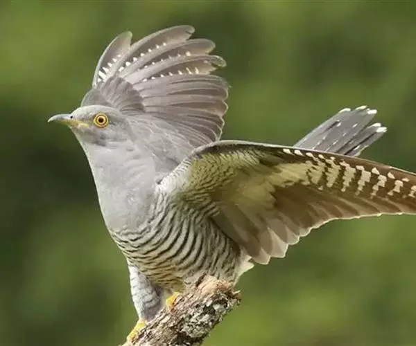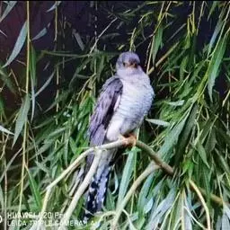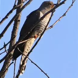 大杜鹃(学名:Cuculus canorus bakeri):是普通杜鹃的中国亚种。体长约320毫米,翅长约210毫米。雄鸟上体纯暗灰色;两翅暗褐,翅缘白而杂以褐斑;尾黑,先端缀白;中央尾羽沿着羽干的两侧有白色细点;颏、喉、上胸及头和颈等的两侧均浅灰色,下体余部白色,杂以黑褐色横斑。雌雄外形相似,但雌鸟上体灰色沾褐,胸呈棕色。又名喀咕、布谷、子规、杜宇、郭公、获谷等。
