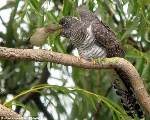 大苇莺在喂养体形比自己还大的大杜鹃雏鸟