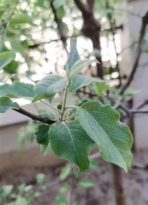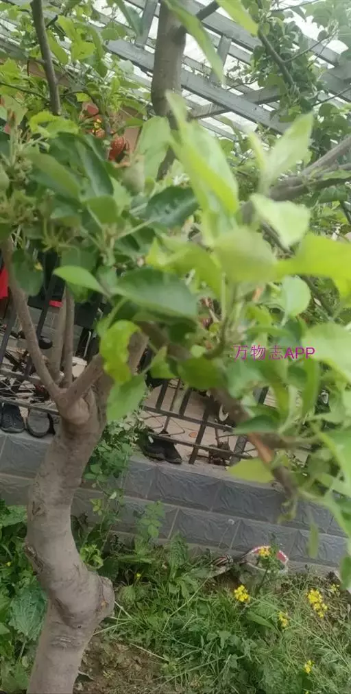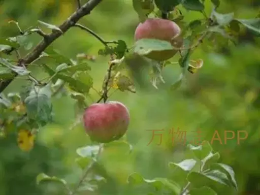 蔷薇科 ,苹果 属落叶乔木,高达15米,树干灰褐色,老皮有不规则的纵裂或片状剥落,小枝幼时密生绒毛,后变光滑,紫褐色。叶序为单叶互生,椭圆形到卵形,长4.9~10厘米,先端尖,缘有圆钝锯齿,幼时两面有毛,后表面光滑,暗绿色。花白色带红晕,径3~5厘米,花梗与花萼均具有灰白色绒毛,萼叶长尖,宿存,雄蕊20,花柱5,大多数品种自花不育,需种植授粉树。果为略扁之球形,径5厘米以 上,两端均凹陷,端部常有棱脊。花期4~6月,果期7~11月果熟。