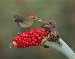 红头穗鹛是雀形目画眉科伪穗鹛属鸟类。成鸟额至头顶或至枕部为棕红色;额基和眼先淡灰黄色;眼圈隐隐泛黄白色;颊和耳羽灰黄色缀有橄榄褐色;其余上体连同翼和尾的表面为橄榄绿褐色;飞羽和尾羽暗褐色,外缘沾茶黄色;下体颏、喉和胸浅灰黄色,具细黑羽干纹;腹和尾下覆羽橄榄褐绿色;腋羽和翼下覆羽淡灰黄色;虹膜棕红色;上喙角褐色,下喙暗黄色;脚黄褐色。红头穗鹛分布于亚洲东南部地区;在中国分布于秦岭及以南的广大地区,包括长江流域、华南、华中和西南地区。栖息于山地森林中。常单独或成对活动,有时也结小群或与棕颈钩嘴鹛等其他鸟类混群,在林下灌丛间来回跳跃穿梭。主食鞘翅目、鳞翅目、直翅目、膜翅目、双翅目和半翅目等昆虫,偶食少量植物种实。繁殖期在4-7月,营巢于茂密灌草丛或竹丛中。窝卵数4-5枚,卵白色且具棕斑,雏鸟晚成;雌雄亲鸟轮流孵卵,共同育雏。红头穗鹛为食虫益鸟,被列入中国林业局2000年8月1日发布的《国家保护的