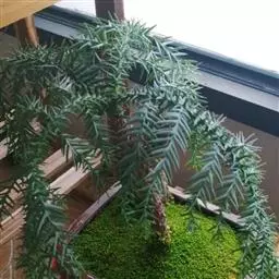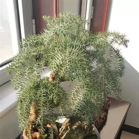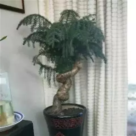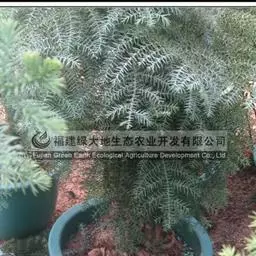 澳洲杉,常绿乔木,一般盆栽为幼树,高在2米以下。喜温暖、潮湿的环境,树冠尖塔形,深绿色。茎干直立,…