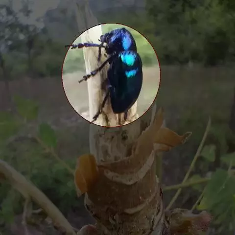 东方金龟(SericaorientalisMotsch),属鞘翅目,金龟科。主要危害苹果、山楂、梨、李、杏、樱桃等果树 。