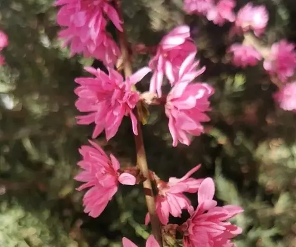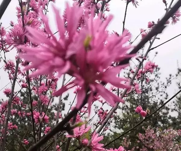 菊花桃每年施三次肥,第一次在开花前,以磷钾肥为主,可促使花大色艳;第二次在开花后,以氮肥为主,使其枝叶繁茂;6月至7月是其花芽分化期,可施一至二次磷钾肥,并适当浇水,促其多形成花芽,有利来年开花。入秋后注意控制浇水,更不能施肥,以防止秋梢萌发,促使当年生枝条木质化。花前对植株稍作修剪,剪去枯枝、乱枝,使开花时株形达到最美状态。花后进行一次重剪,将开过花的枝条保留2至3个芽,以促发新枝,形成开花枝。对于生长过旺的枝条在夏季可摘心,以控制长势,多形成花芽。盆栽植株冬季可放在室外避风向阳处或在室内越冬,每年春季换盆一次。栽种时放些腐熟的饼肥末、骨粉等作基肥。