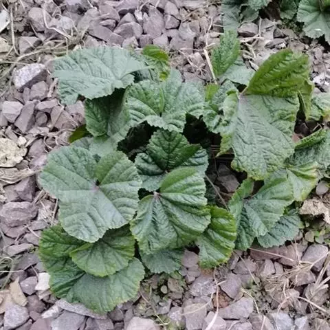 一年生草本,高1米;不分枝,茎被柔毛。叶圆形,常5-7裂或角裂,径约5-8厘米,基部心形,裂片三角状圆形,边缘具细锯齿,并极皱缩扭曲,两面无毛至疏被糙伏毛或星状毛,在脉上尤为明显;叶柄瘦弱,长4-7厘米,疏被柔毛。