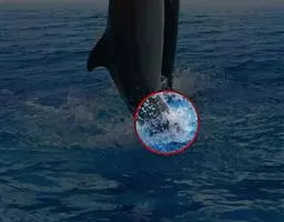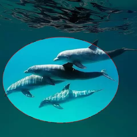 真海豚,身体细而流线型。体色十分复杂而独特,通常十字交叉型,黄褐色在前灰色在后,背面黑色向下延伸,…