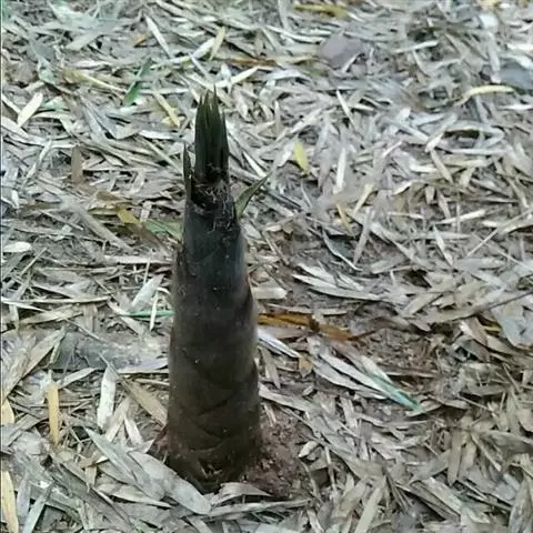 末级小枝具2或3叶;叶耳不明显,有脱落性鞘口繸毛;叶舌稍伸出;叶片质薄,长7-10厘米,宽约1.2厘米。花枝呈短穗状,长3.5-5厘米,基部托以4-8片逐渐增大的鳞片状苞片;佛焰苞4-6片,除边缘外无毛或被微毛,叶耳不存在,鞘口繸毛少数条或无,缩小叶细小,通常呈锥状或仅为一小尖头,亦可较大而呈卵状披针形,每片佛焰苞腋内有1-3枚假小穗。小穗披针形,长1.5-2厘米,具2或3朵小花,小穗轴具柔毛;颖1-3片,偶可无颖,背面上部多少具柔毛;外稃密生柔毛,长1.2-1.5厘米;内稃短于外稃;花药长约8毫米;柱头3,羽毛状。笋期4月下旬。
