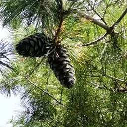 红松(Pinus koraiensis Sieb. et Zucc.)裸子植物,常绿乔木,高可达40米。小枝密生褐色柔毛。叶5针一束,粗硬,树脂道3个,叶鞘早落。球果卵状圆锥形,种鳞先端钝,向外反曲,成熟时种子不脱落。种子大,长1.2~1.6厘米,无翅。产于中国东北长白山到小兴安岭,常同鱼鳞松、红皮云杉组成混交林。耐寒性强,喜微酸性土或中性土。木材轻软、细致、纹理直、耐腐蚀性强,为建筑、桥梁、枕木、家具优良用材;树皮可提取栲胶,树干可采松脂;种子供食用或药用,又可榨油供食用及工业用。为产地主要造林树种,又为观赏树。