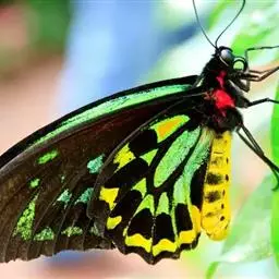 亚历山大女皇鸟翼凤蝶,又称大鸟翼蝶,是鳞翅目凤蝶科鸟翼蝶属蝴蝶;翅膀圆阔、褐色,…
