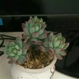 吉娃莲,景天科拟石莲花属,别名:吉娃娃,吉娃莲,植株小型,无茎的莲座叶盘非常紧凑。卵形叶较厚,带小尖,…