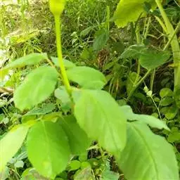 小枝及叶柄具刚毛及星状分枝的硬毛或刚毛以及粗而直的皮刺。大叶片长约30厘米,宽约15-20厘米,常羽状半裂,裂片为不规则的卵形或披针形,上面粗糙,具刚毛状的单毛,下面被粗糙的星状毛。