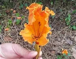 叶轴长约30厘米左右;小叶卵形至卵状披针形,长4-7厘米,宽2-3.5厘米,顶端尾状渐尖,基部阔楔形,全缘,侧脉5-6对,向上斜伸,两面均无毛,侧生小叶片在近基部的一侧疏生少数盘菌状腺体;侧生小叶柄长在5毫米以下,顶生小叶柄长1-2厘米。顶生圆锥花序,直立,长25-35厘米,宽30厘米;苞片线状披针形,长可达10厘米,早落,苞片线形,长4-6厘米。花萼蕾时封闭,锥形,内包有白色乳汁,萼齿5,卵状披针形,中肋明显,长约12毫米。花冠钟状漏斗形,白色至淡黄色,长约6-8厘米左右,裂片5,圆形,具皱纹,长约2.5厘米。雄蕊4,2强,光滑,退化雄蕊存在,丝状。子房光滑,2室,胚珠每室二列,花柱外露,柱头2裂。蒴果细长,下垂,圆柱形,稍弯曲,多沟纹,渐尖,长达85厘米,径约1厘米,果皮薄革质,小皮孔极不明显;隔膜细圆柱形,微扁。种子椭圆形,连翅长约2厘米,宽约5毫米。花期5-9月,果期10-12月。