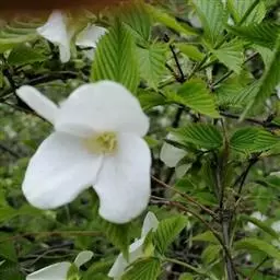 叶片卵形至长卵形,稀长椭卵形,长4~7厘米,宽2.5~4厘米,先端渐尖,稀急尖,基部圆形,边缘有钝锯齿,稀先端有少数细锐锯齿,上下两面均无毛或在萌蘖上叶片有柔毛,侧脉5-10对;叶柄长2.5~5厘米,无毛;托叶膜质,线状披针形,先端渐尖,边缘有腺齿,长6~10毫米,内面具白色绵毛,很早脱落。