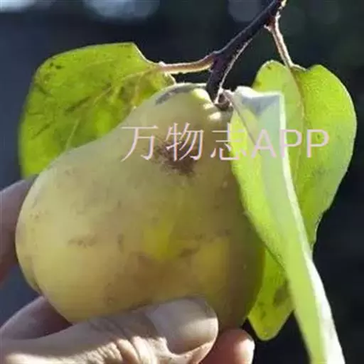 树冠较大,开张。叶长约6.5cm,宽约5.2cm,叶柄长约1.3cm。果实短圆锥形,纵径6.6cm,横径6.8cm。梗部有绿色瘤状突起。果面毡茸较薄,易脱落。花瓣残存,萼洼深广。果肉米黄色,肉韧、汁少,味酸甜,香味浓。心室5~7个,种子较多,黄褐色,可溶性固形物14%。