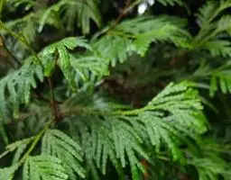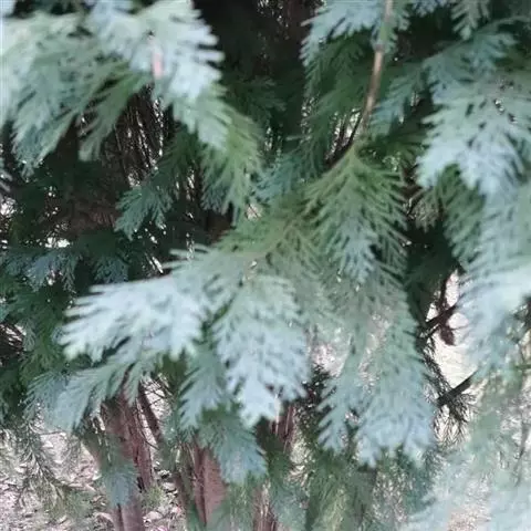 乔木,在原产地高达50米;树皮红褐色,裂成薄皮脱落;树冠尖塔形;生鳞叶小枝条扁平,排成一平面。鳞叶先 端锐尖,侧面之叶较中间之叶稍长,小枝上面中央之叶深绿色,下面之叶有明显的白粉。球果圆球形,径约6毫米,熟时暗褐色;种鳞5—6对,顶部中央稍凹,有凸起的小尖头,发育的种鳞各有1—2粒种子;种子三角状卵圆形,有棱脊,两侧有宽翅,径约2—3毫米。