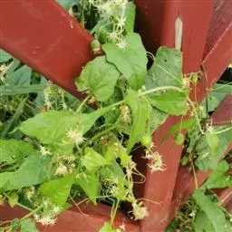 搭架整枝蛇瓜藤蔓发达,生长茂盛,分枝能力强,且瓜条较长,所以需要搭篱架或棚架,当瓜蔓长超过30厘米时,要及时绑蔓、引蔓上架。蛇瓜连续坐果能力强,它的主蔓侧蔓都结瓜,但一般主蔓结瓜,瓜条大,畸形瓜少侧蔓结瓜,瓜条小,畸形瓜多,所以可根据栽培方式及上市早晚适当修剪侧蔓。上市越早、栽培模式越精细的,侧蔓修剪越彻底,一般每株可留2-3根侧蔓,日光温室可将侧蔓全部剪去,只留主蔓结瓜。蛇瓜植株基部节位着生雄花序,上部雌花节位也着生雄花序,这些雄花序消耗大量的养分,所以需要疏去基部和雌花节位上的雄花序,摘除部分卷须,集中养分供给雌花,促进结瓜。