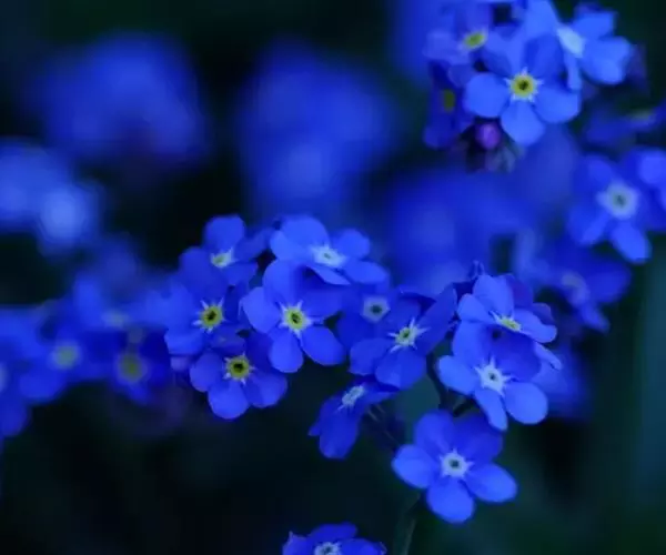 勿忘草 勿忘草株形柔美,茎枝纤细,叶片的形状很像柳树的叶子,无数朵小蓝花开满茎顶部的每个小枝,花瓣的蓝色仿佛是由天空的颜色染成的让人充满无限遐想。花朵中央有一圈黄色心蕊色彩搭配非常和谐。