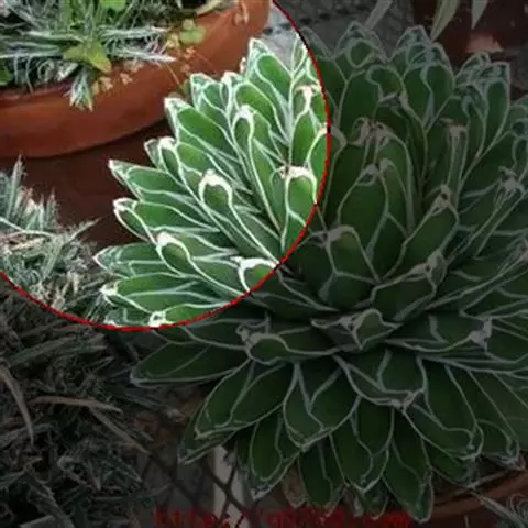 皇后龙舌兰是天门冬科、龙舌兰属多年生草本多浆植物。无主茎,叶丛生,莲座状,株幅40厘米。叶较多,…