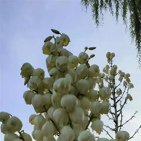 丝兰是天门冬科丝兰属植物。茎短或无茎;圆锥花序烛台状,花朵杯形,下垂,白色;叶基部呈剑形放射状,…