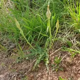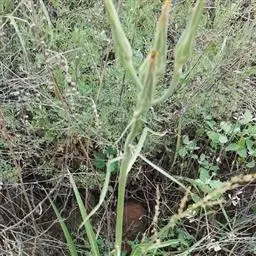 桃叶鸦葱(学名:Scorzonera sinensis Lipsch. et Krasch. ex Lipsch.),别名老虎嘴,为菊科多年生草本,高5-50厘米。根垂直直伸,粗壮。茎直立,簇生或单生,基部被稠密的纤维状撕裂的鞘状残遗物,和田地里小蒜头的外皮相似。基生叶披针形,大小不定,包括叶柄长可达33厘米,短可至4厘米,宽0.3~5厘米。桃叶鸦葱最醒目的形态特征之一就是其皱波状的叶缘。茎生叶较少,鳞片状,披针形,半抱茎或贴茎。