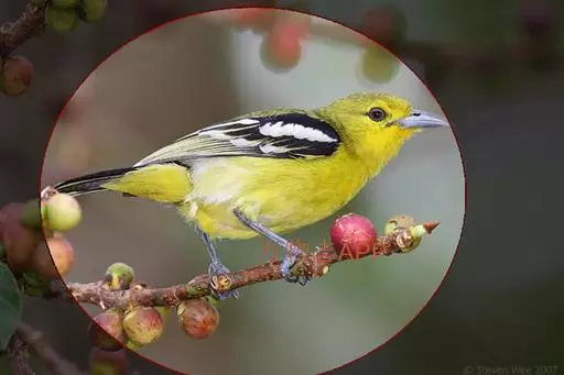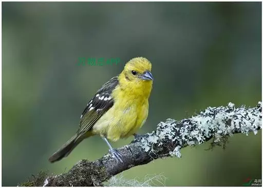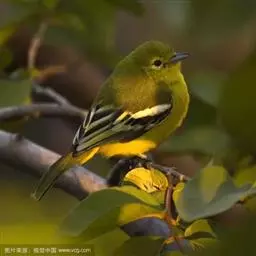 黑翅雀鹎 黑翅雀鹎的雄鸟额酪黄色,头顶橄榄黄绿色,有的枕部杂有黑色。背肩橄榄黄绿色,有时羽端或多或少杂有黑色。两翅黑色,翅上小覆羽黑色而具光泽,中覆羽和大覆羽具白色端斑,在翅上形成两道明显的白色翼斑,其中前面一道宽阔。大覆羽具浅黄色狭缘。飞羽黑色,除最外侧1-2对飞羽外,其余飞羽和初级覆羽外翈先端转白,最内侧飞羽内翈亦具白色羽缘。尾上覆羽和尾羽亮黑色。尾羽先端及外侧尾羽外翈缀橄榄黄色。