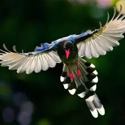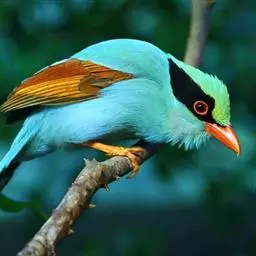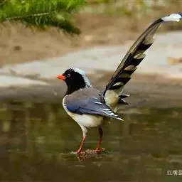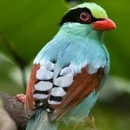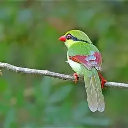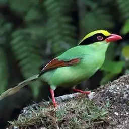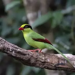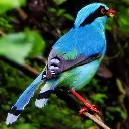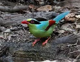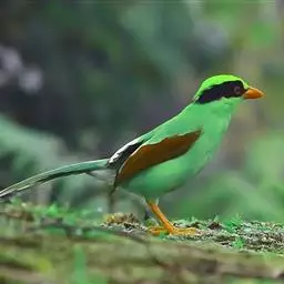 蓝绿鹊:中型鸟类,共有5个亚种。体长36-38厘米。尾长,嘴、脚红色。通体羽色主要为草绿色,…