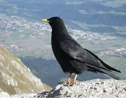 红嘴山鸦,是脊索动物门鸟纲雀形目鸦科鸟类。红嘴山鸦的成鸟通体羽毛纯黑色具有蓝色金属光泽,…