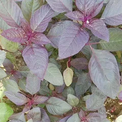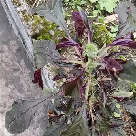 一年生草本,高80-150厘米;茎粗壮,绿色或红色,常分枝,幼时有毛或无毛。 苋 叶片卵形、菱状卵形或披针形,长4-10厘米,宽2-7厘米,绿色或常成红色,紫色或黄色,或部分绿色加杂其他颜色,顶端圆钝或尖凹,具凸尖,基部楔形,全缘或波状缘,无毛;叶柄长2-6厘米,绿色或红色。花簇腋生,直到下部叶,或同时具顶生花簇,成下垂的穗状花序; 花簇球形,直径5-15毫米,雄花和雌花混生;苞片及小苞片卵状披针形,长2.5-3毫米,透明,顶端有1长芒尖,背面具1绿色或红色隆起中脉;花被片矩圆形,长3-4毫米,绿色或黄绿色,顶端有1长芒尖,背面具1绿色或紫色隆起中脉;雄蕊比花被片长或短。胞果卵状矩圆形,长2-2.5毫米,环状横裂,包裹在宿存花被片内。种子近圆形或倒卵形,直径约1毫米,黑色或黑棕色,边缘钝。花期5-8月,果期7-9月。
